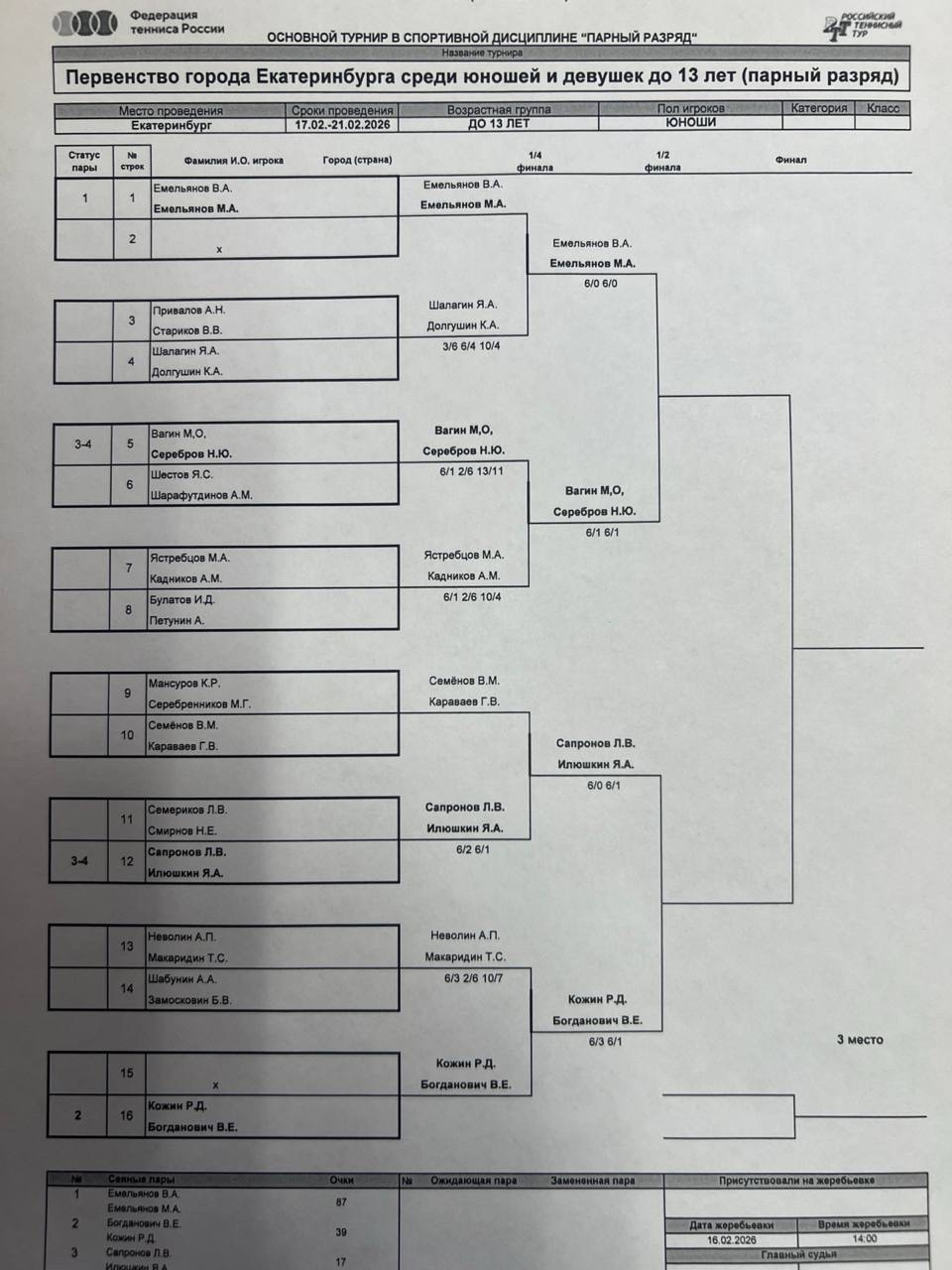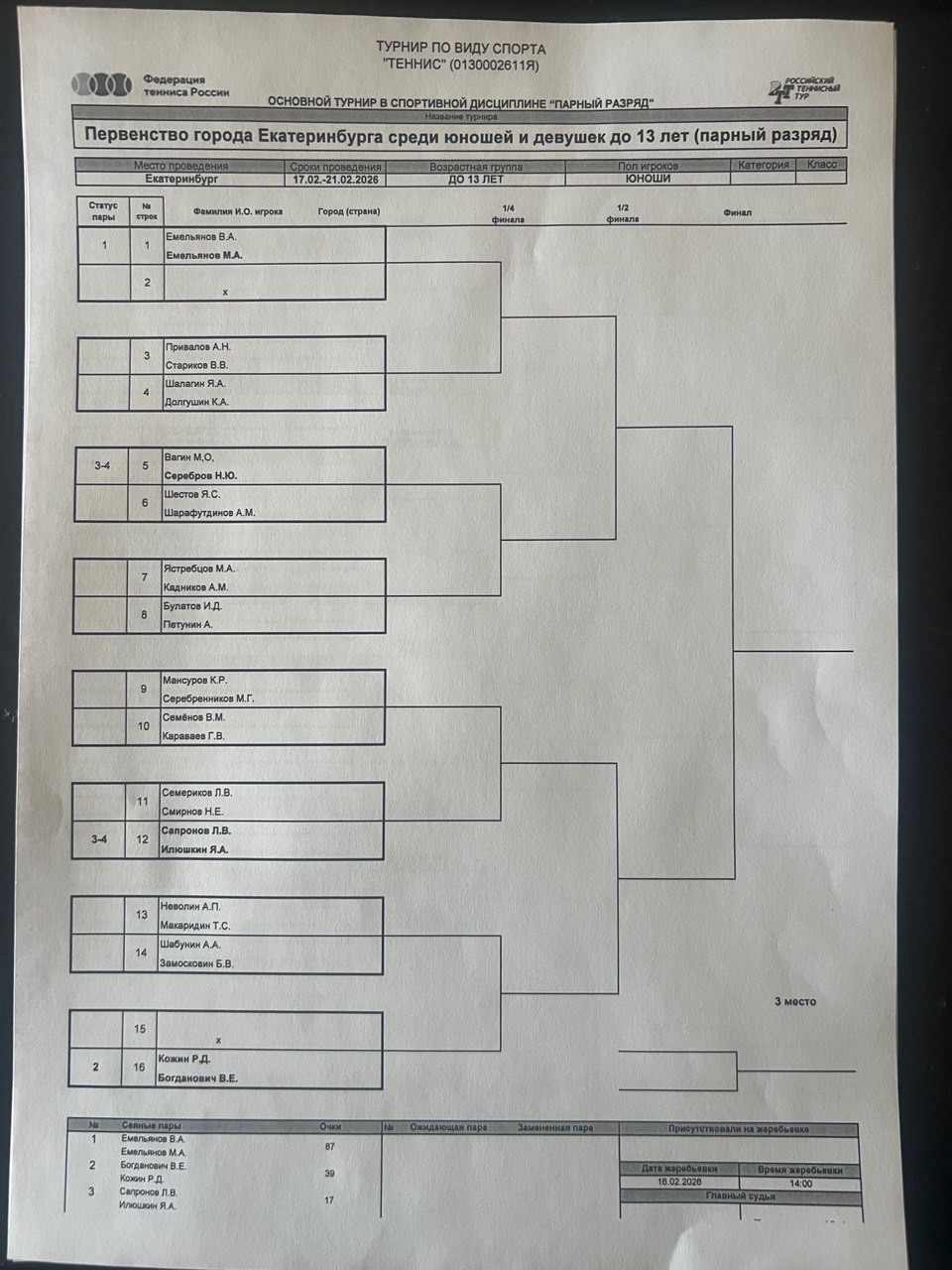 Жеребьевка: 16.02.2026 в 14:00