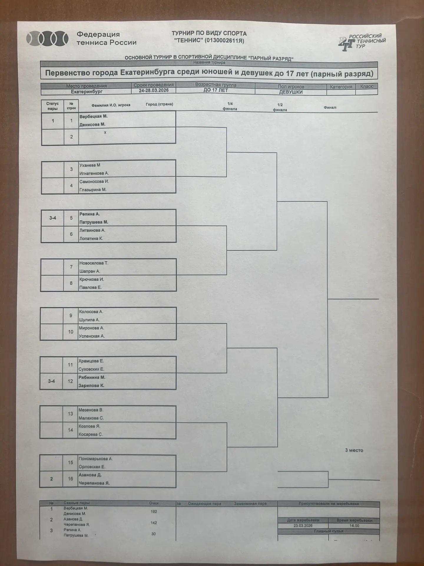 Первенство города Екатеринбурга до 17 лет, 24-28 марта