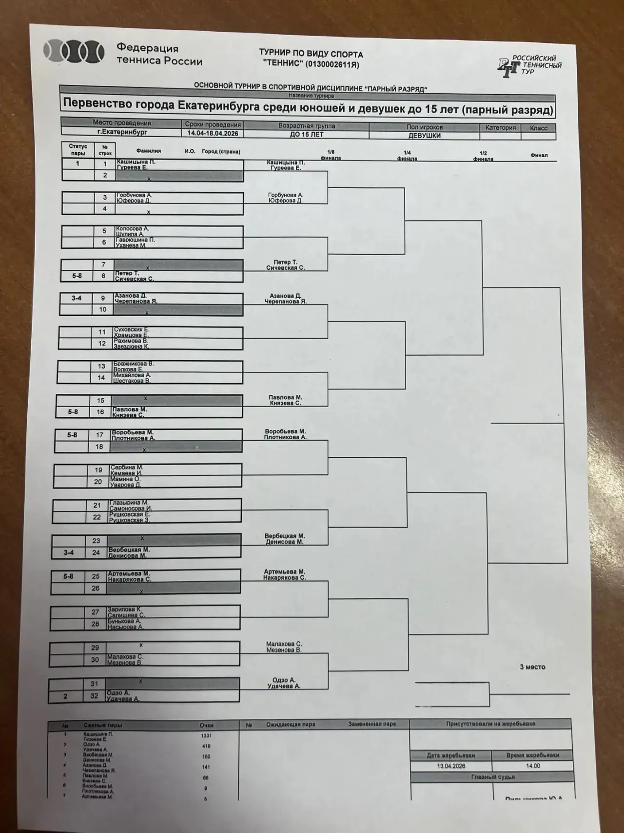 Первенство города Екатеринбурга до 15 лет, 14-18 апреля